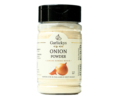 Onion Powder dibuat dari bawang bombay yang dikeringkan dan dihaluskan. Memberikan rasa manis-gurih yang lembut, cocok untuk saus, marinasi, maupun campuran bumbu masakan.