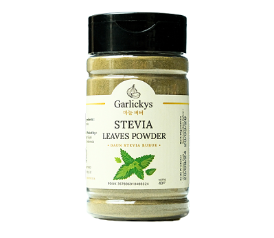 Bubuk daun stevia dengan rasa manis alami tanpa kalori. Cocok digunakan sebagai pemanis alami untuk minuman dan makanan, memberikan rasa manis yang ringan dan sehat.